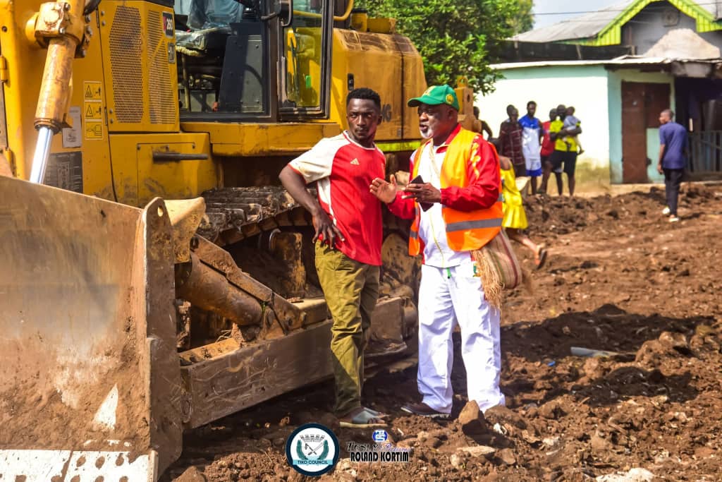 Tiko council and his team ( chief of Technical Service, Town Planning, Municipal Police , Hygiène and sanitation, Communication), among others with a bulldozer were at the site on Monday January 5, 2026 working on the road.